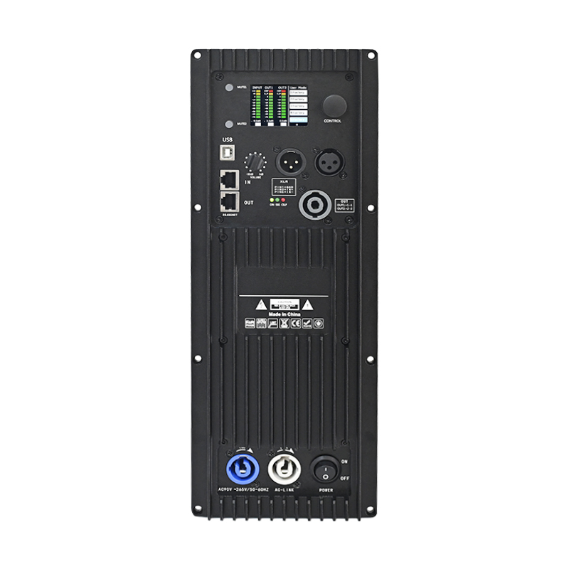 9) Built-in DSP Module, controlled by Computer for Equalizer, Delay, Volume and so on.